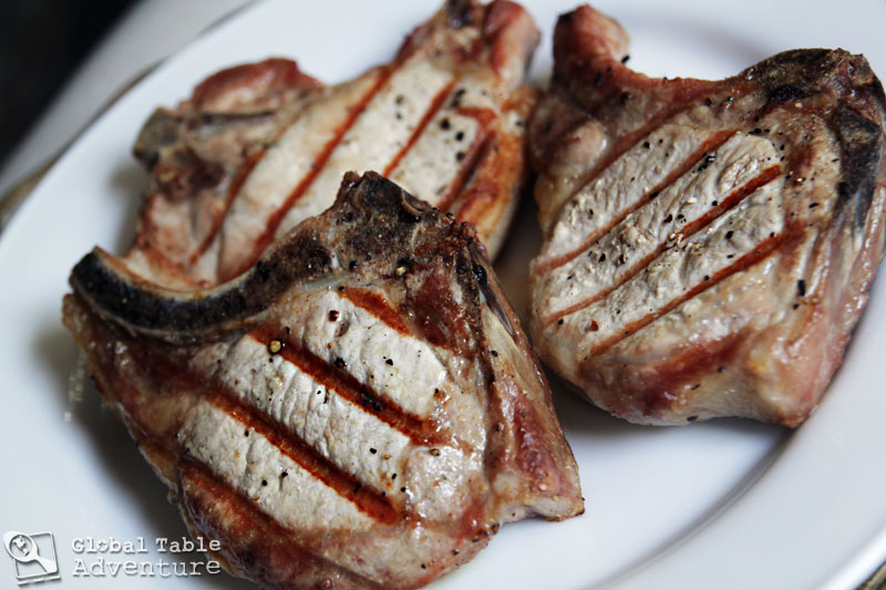 - Grill up pork chops for dinner. Make three extra for the ravioli filling. Move frozen, chopped spinach to fridge to defrost.