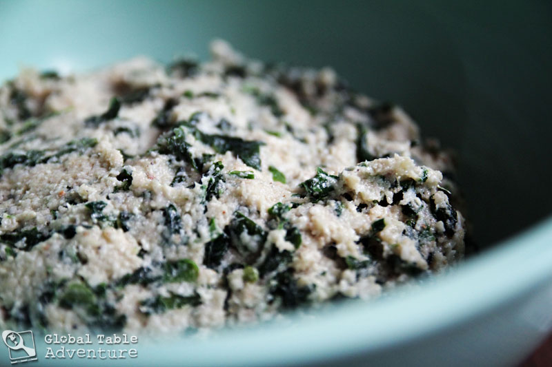 It looks to me like he ground his spinach up even more – maybe he passed it through the meat grinder. I’ll try that next time, just for fun.