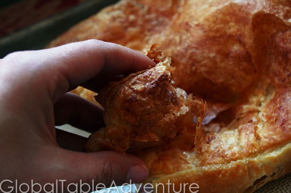 Bake the puff pastry according to package directions. It will turn into a giant, greasy pillow. Try not to lay your head on it.