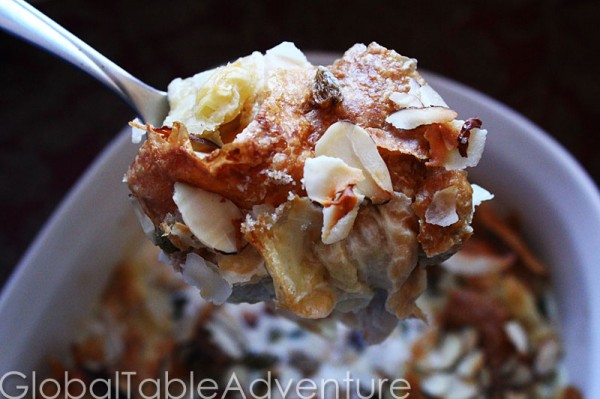 As simple as can be, this sweet, milky blend of pastry, nuts, raisins, and coconut flakes will be a distinct addition to your Egyptian Global Table.