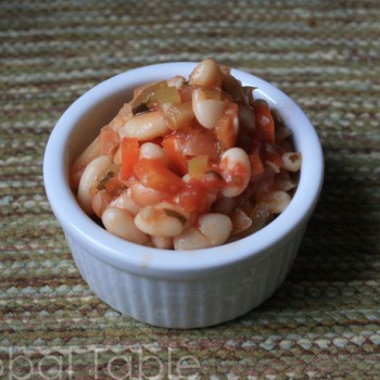 1. Add beans to a large pot. Add enough water to cover 1″ and salt. Simmer until almost done.