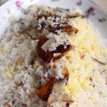 I almost didn’t make this pilaf because there were so many steps. I went out on a limb because I figured Azeri’s must know how to cook basmati rice better than me. I was right. This is a great rice dish, buttery and delicately perfumed with saffron.