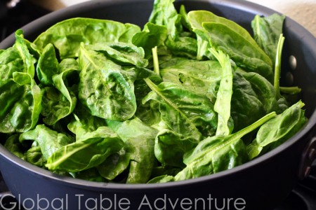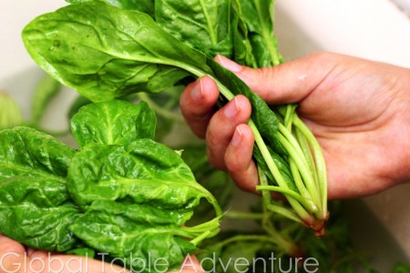 1. Clean and trim 1 bunch spinach.