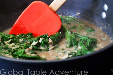 4. Add all ingredients (including spinach) to large pot with water. Simmer, covered.