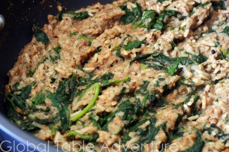 The rice will have absorbed all the water, making for a pasty mass of spinach and rice.