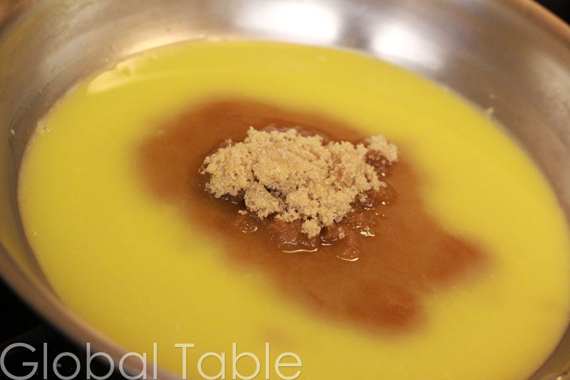 1. Heat orange juice, brown sugar, and lemon juice in a skillet for about 15 minutes on low (there should be small bubbles breaking the surface, but not quite a simmer). The orange juice will reduce and thicken into a syrup.