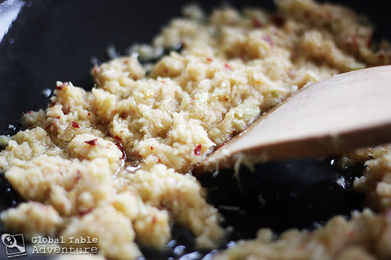 - Heat the coconut oil up in a large wok and add the seasoning paste. Fry until fragrant and softened, 2-3 minutes.