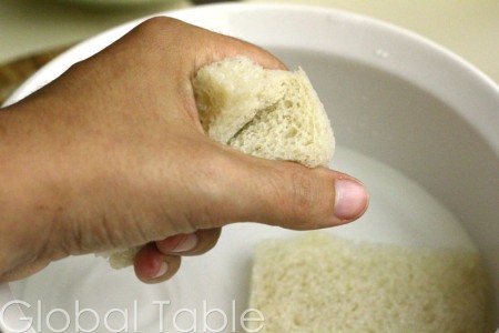 1. Soak bread in water, then squeeze dry.