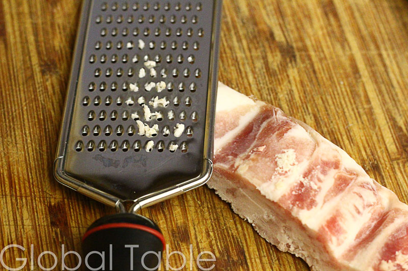 1 oz slab bacon, frozen and grated