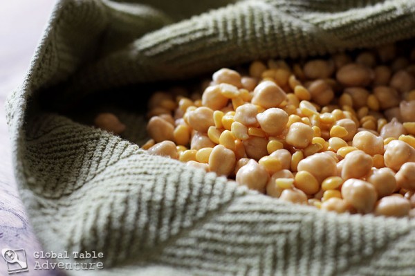 Next, rub the chickpeas and lentils down in a fuzzy towel.