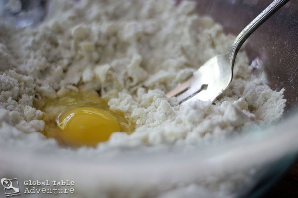 Next, use  a fork to incorporate your beautiful golden egg (or, if using a food processor, pulse it until it just comes together). Briefly knead together and, if needed, add extra flour 1 tablespoon at a time until a soft dough forms (a bit moist and a tad sticky, but not ridiculously so).