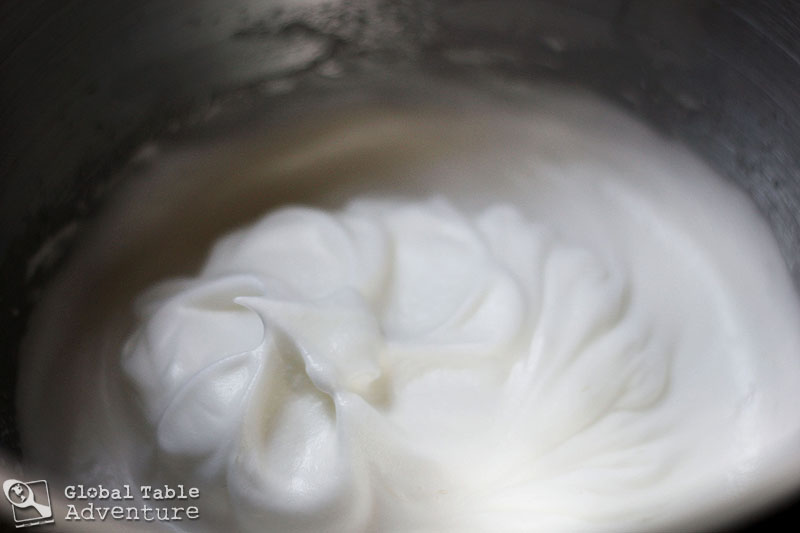 7. Whip egg whites until medium peaks form, gradually streaming in the 2Tbs of sugar.