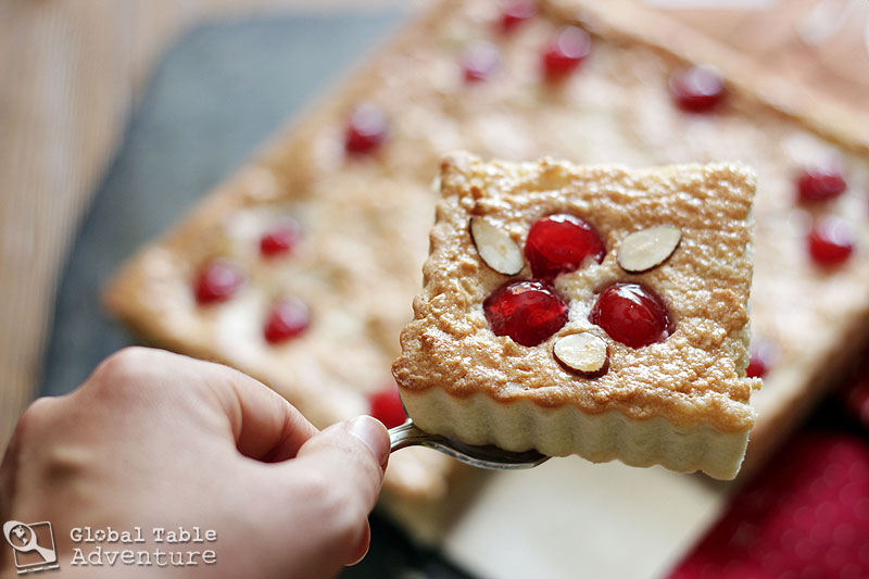 Recipe for Candied Cantaloupe & Cherry Almond Tart | Galapian