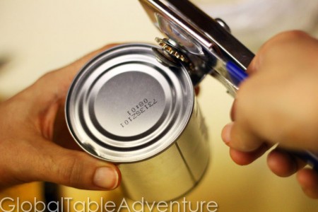 Meanwhile, remove the label from the can. You’ll thank me later, when you don’t have to clean paper shreds out of your pan.