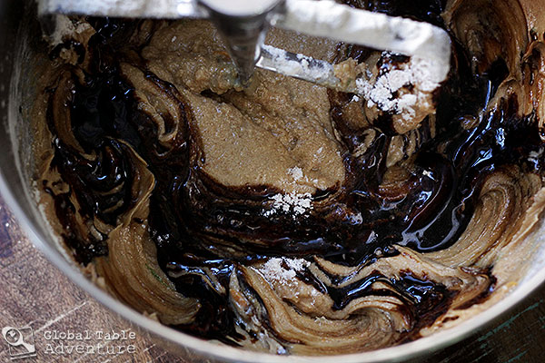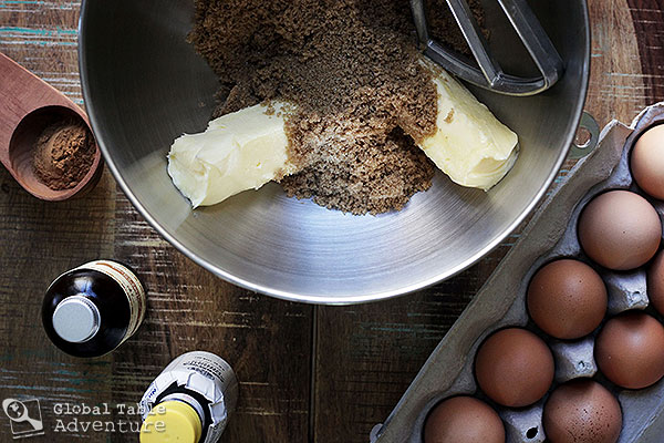 - Cream the softened butter and brown sugar together in a standing mixer, then add eggs one at a time, scraping sides as needed. Beat in zest, vanilla, bitters, and molasses.