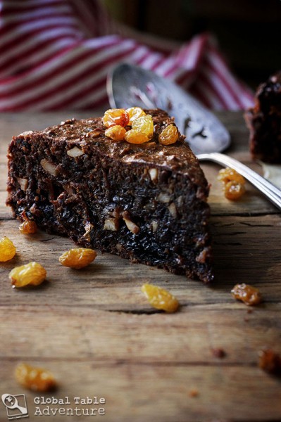 Black cake is a cousin to the British Plum Pudding and is made with an expensive array of dried fruits, like cherries, raisins, and prunes and topped off with a bit of nutty crunch (almonds for me). Before baking – sometimes for months – the fruit soaks in rum and cherry brandy until it’s so plump and intoxicated, that only good things can come from it.