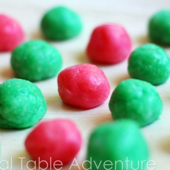 - Split the mixture between two bowls and add the food coloring to each and roll into balls.