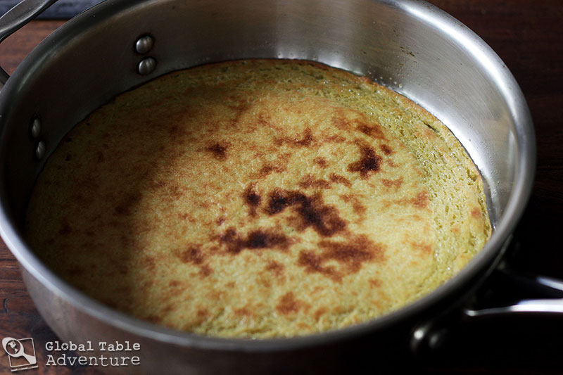 Meanwhile preheat the broiler and heat a skillet over high heat until screaming hot with about 1-2 Tbsp of olive oil. Coat the bottom of the pan with a layer of batter and once it’s sizzling, place it under the broiler until golden brown.