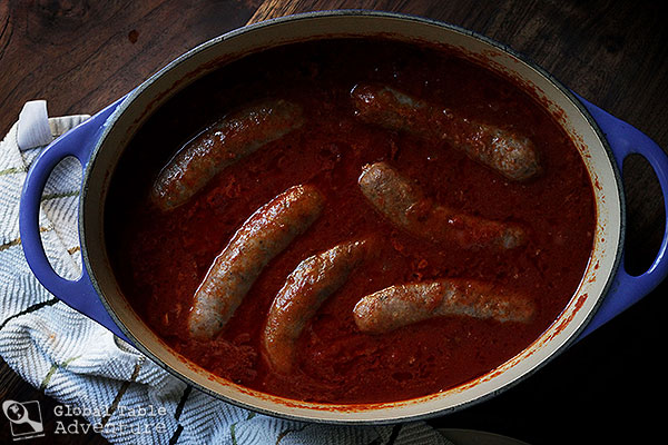 vatican.city.food.recipe.img_2501Remove the sausages and, when cool enough to handle, slice into half moons. Break up the tomato chunks, if there are any, and stir the sausage back into the sauce.