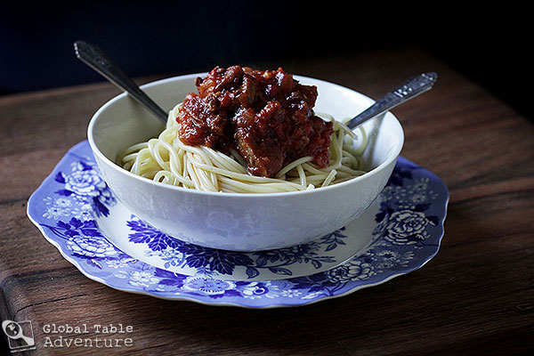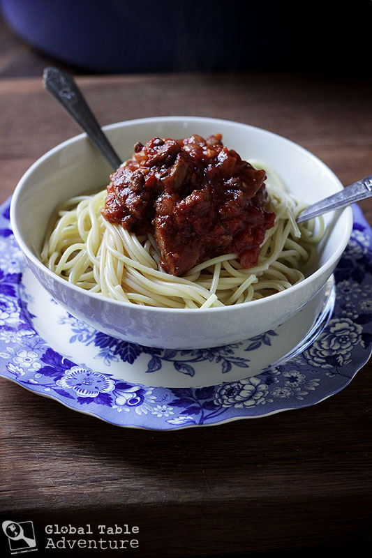 This is my modernized version. One that relies heavily on a wooden spoon and pre-ground meat.