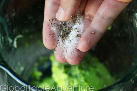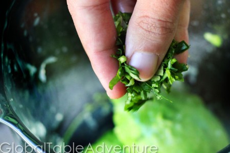 And a healthy pinch of fresh cilantro for even more South American flavor. You don’t have to chop it too finely because the blender will help you out. Thank goodness for modern appliances.