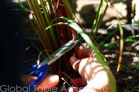 The fresh lemongrass is actually from my garden! It looks like a giant piece of overgrown grass, but with the most incredible, lemony-spring scent. Clip the lemongrass as close to the ground as you can. Here’s what not to do: