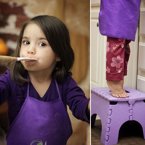 The second time around Ava was able to be at my right hand, helping me mix, shape, and bake the cookies. For Ava, this meant she was mostly on her tippy toes. We had so much fun putting this cornstarch and butter based cookie together. The trick was to try not to eat it all before baking.