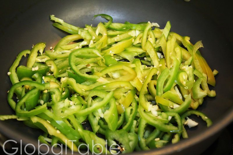 1. Slice peppers into strips, removing seeds if desired.