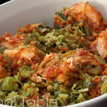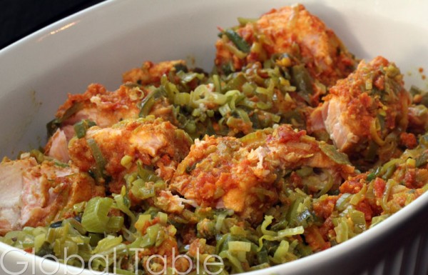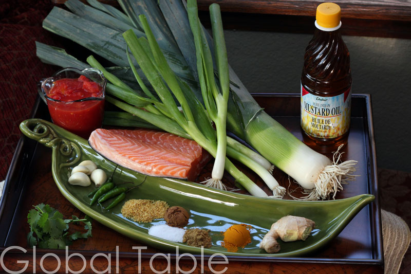 3. Heat a little mustard oil in a skillet over medium heat. Add the leeks and green onions. Cook until soft. Add fish and cover. Steam until just cooked through. Serve immediately over rice.