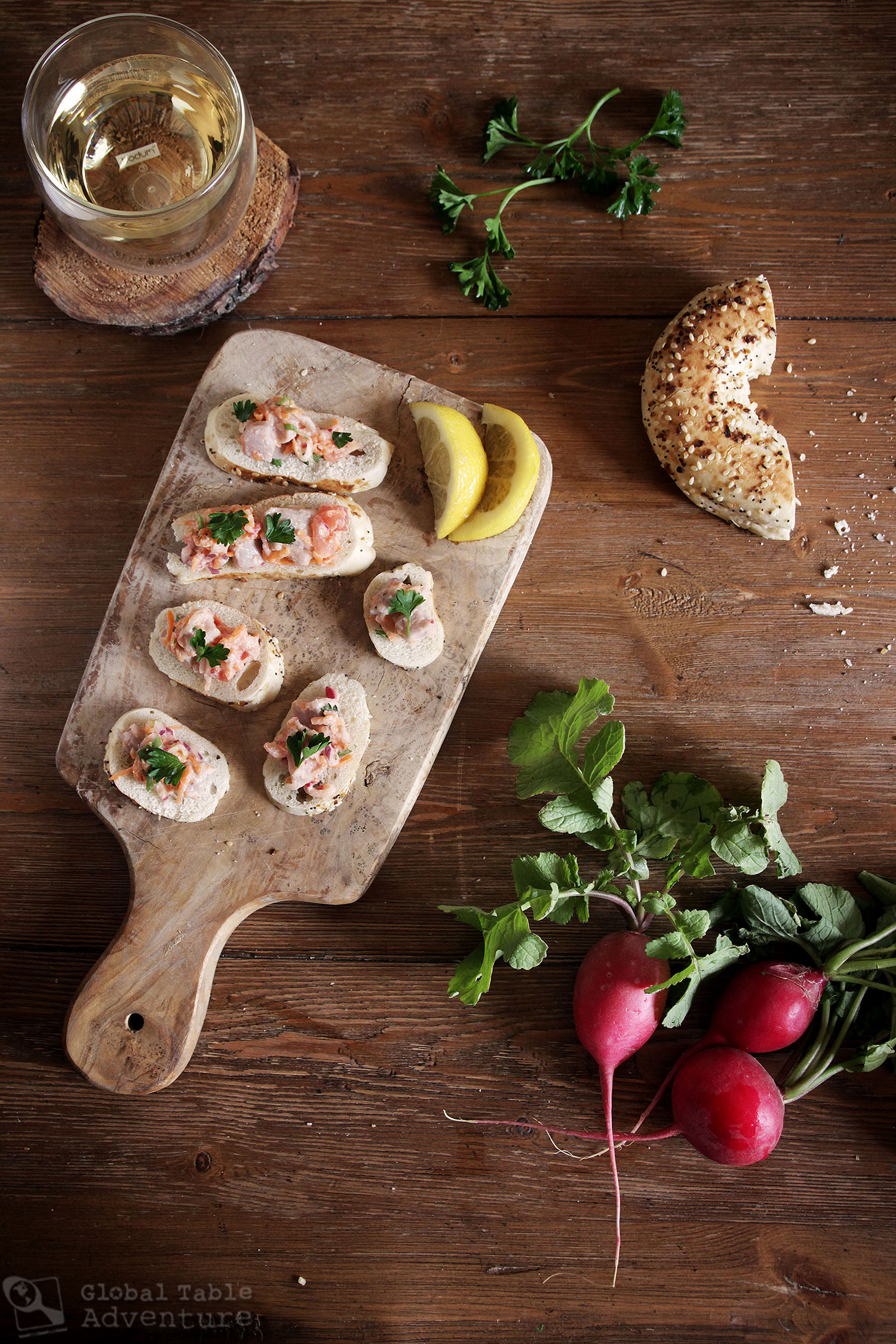 (Pro Tip: if you don’t have any crostini, a bagel will do the trick in a pinch!)