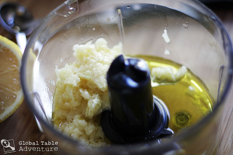 - Add garlic to a small processor with olive oil and lemon juice. Puree until perfectly smooth.