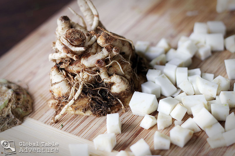 - Don't be scared by the celeriac. Just cut off the gnarliness and cube the pretty white insides.