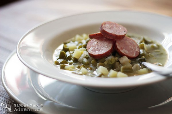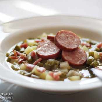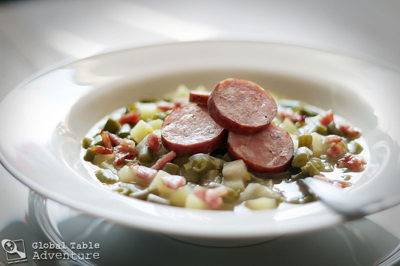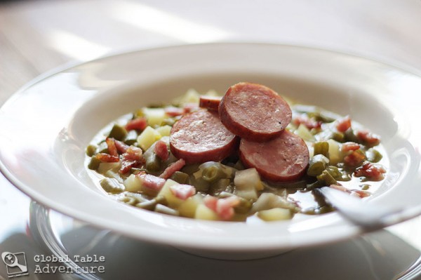 The chef’s name is Lea Linster and her impeccable dishes show that country food can be just as classy as city food. As I watched her speak about this traditional green bean soup, I knew I had to try it. With a few simple flourishes, she turns a country-bumpkin dish into something I’d be willing to serve at any dinner party. Especially because she insists on inlcuding the same special ingredient I do: lots of love.