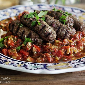 This week we dove into a summery garden spread from Oman. Kofta are grilled hand-formed sausages enjoyed in Oman and neighboring countries. In fact, versions of kofta are enjoyed as far east as India (although these are typically served in meatball form). These Omani kofta sizzle with earthy cumin, warm flutterings of cinnamon, and are rounded out by coriander seed, fresh parsley and cilantro.