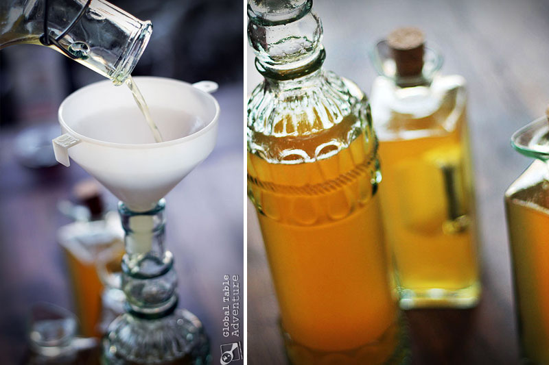 Pour the golden goodness into sterile bottles (run them through the dishwasher before using) and set aside for two weeks (or up to a year).