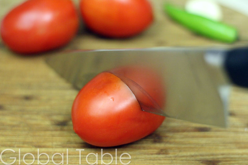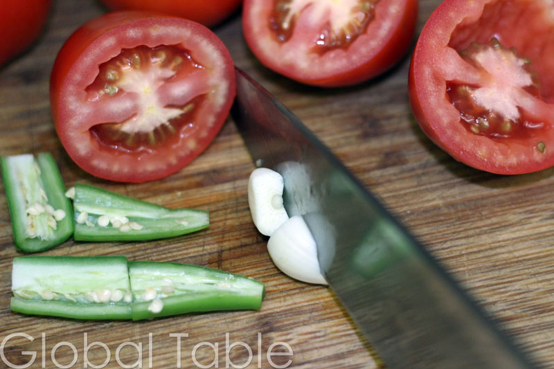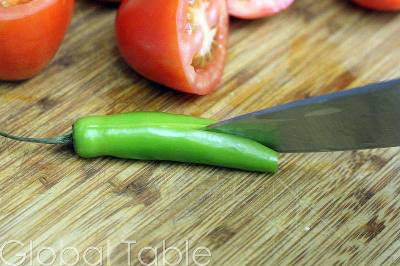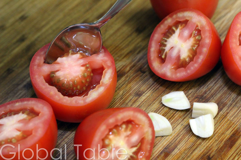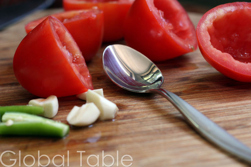 - Take out the seeds and stuff from the tomato. Tomato guts are too wet and acidic for this recipe. Remove seeds from chili pepper if you want to make it more mild.
