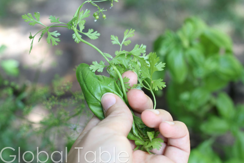 - Grab some cilantro and basil.
