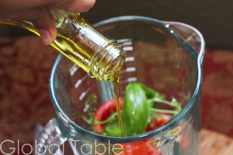 - Put everything in a blender along with the olive oil and salt.