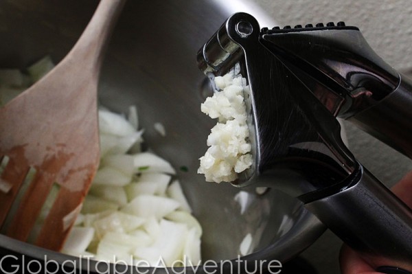 While they’re cooking, add in the crushed garlic…