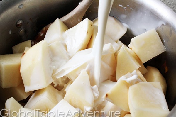 Add 2 cups of milk and cover with water.