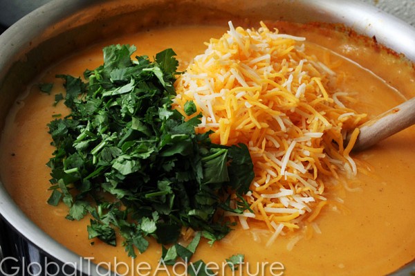 - You’re almost done! Stir in chopped cilantro and shredded cheese.