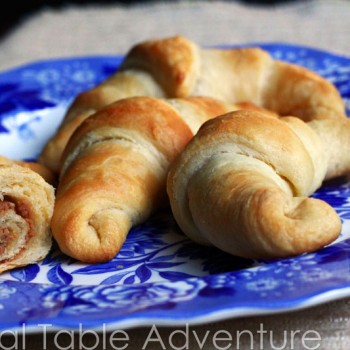 Peanut butter rolled up into a steamy hot croissant – the ultimate snack, perfect with breakfast, lunch or dinner. While you are welcome to use homemade croissant dough, I had to take a short cut – it was one of those weeks. We’ll call this fast food for the home cook.