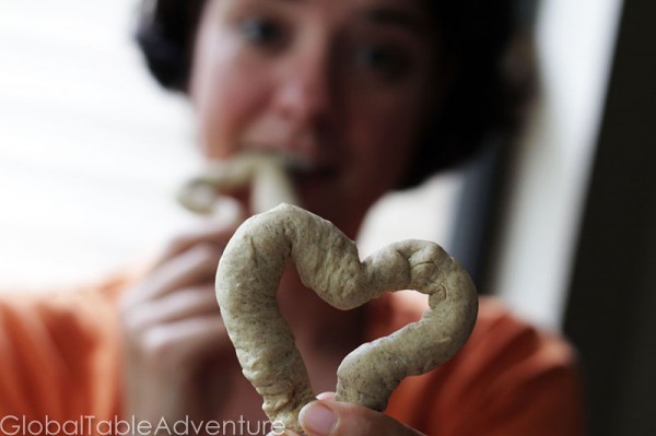 Twist and rope them into whatever squiggly shape your heart desires, placing them on a lined baking sheet.