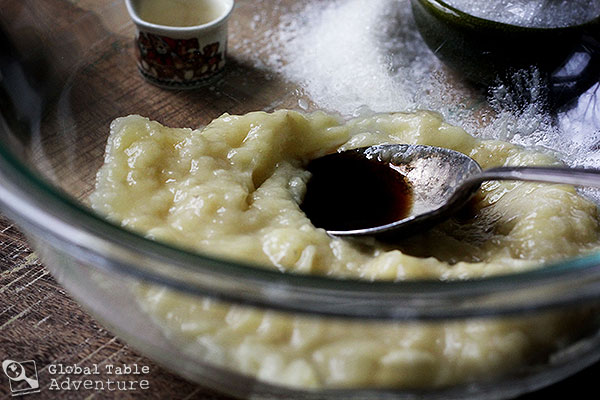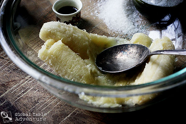 Give the bananas a smooth mash with the back of the spoon. If chunks remain, it wasn’t ripe enough and you may need a food processor to smooth things out. No biggie.