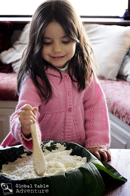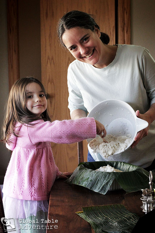 [dropshadowbox align=”center” effect=”lifted-both” width=”350px” height=”” background_color=”#ffffff” border_width=”1″ border_color=”#dddddd” ]Shortcut Idea: Potentially, you could grate the fiber-free tubers in a food processor, but you’ll want to create a really fine texture. Maybe pass the cassava through the grater attachment, then pulse the gratings in the regular bowl? If you try this, please let me know how it works out.[/dropshadowbox]