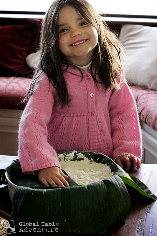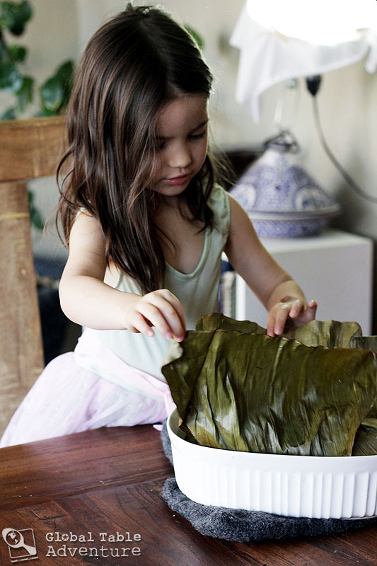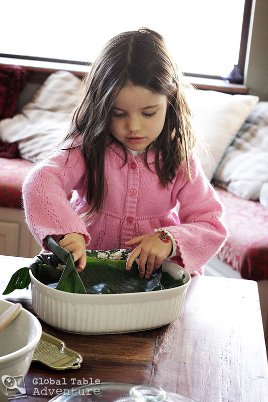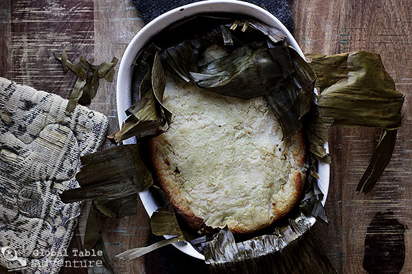 Then fold the banana leaves back over the cassava mixture…