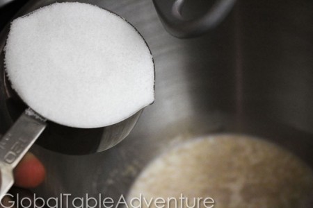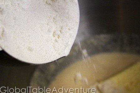 1. In the bowl of a standing mixer, combine milk and yeast. Let sit and froth up for about 10 minutes.