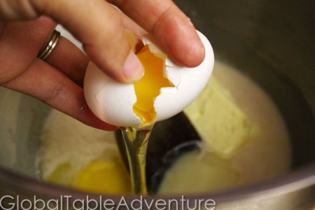 Eggs and softened butter. Both the eggs ad the butter help make this bread rich, and tender – like brioche.