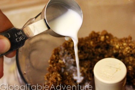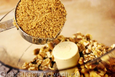 - Add walnuts, brown sugar, butter, cinnamon, vanilla extract and milk to a food processor and pulse.