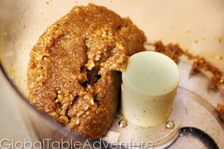 I gave everything a quick pulse and then realized – oops, need a little milk. Just enough to get this paste loose for spreading. 1/8 cup should be plenty.